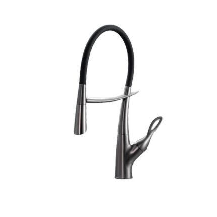 Modern single-handle kitchen faucet with a sleek stainless steel design and smooth hot & cold water control. Built for durability, easy operation, and efficient performance—perfect for modern kitchens.