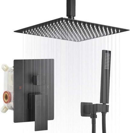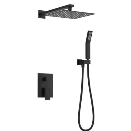 Upgrade your bathroom with this modern single-handle rain shower set in a sleek matte black finish. Designed to deliver a relaxing rainfall experience, it combines an overhead shower with a handheld option for maximum convenience. Built from high-quality materials, this stylish shower system offers durability, smooth water control, and a luxurious spa-like feel for everyday use.