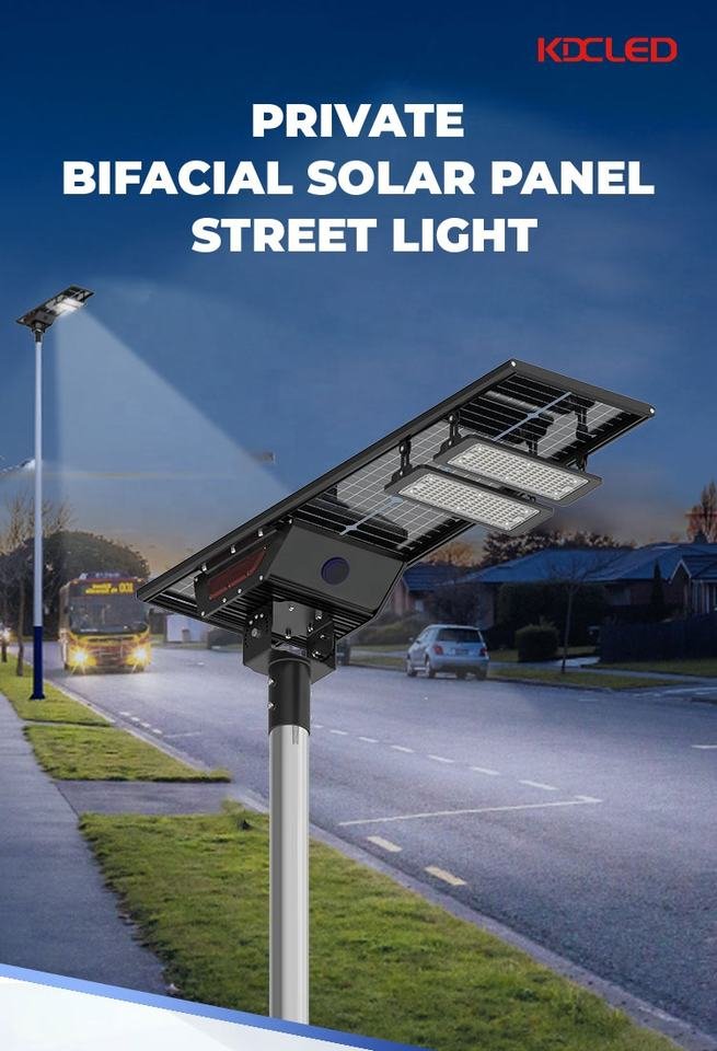 The KDC solar LED street light is a powerful and eco-friendly lighting system engineered for highways, streets, parking areas, and large outdoor spaces. Featuring an advanced all-in-one design, it integrates a high-efficiency solar panel, long-lasting lithium battery, and bright LED chips into a single unit for easy installation and maintenance. These lights typically offer high lumen output and wide-angle illumination, ensuring clear visibility and enhanced safety across large areas.
