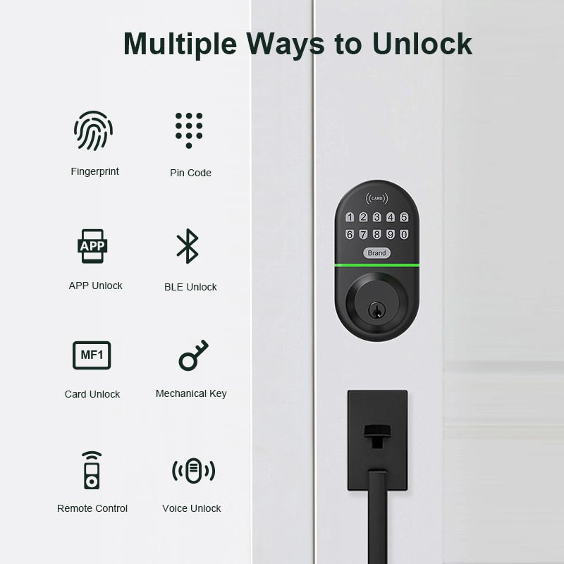 The fingerprint keyless smart door handle lock is a modern security solution designed for convenience, safety, and advanced access control. Featuring multiple unlocking methods such as fingerprint, PIN code, RFID card, and mobile app control, it eliminates the need for traditional keys. Built with durable materials and a sleek design, it provides fast, secure access for homes, offices, and commercial spaces.