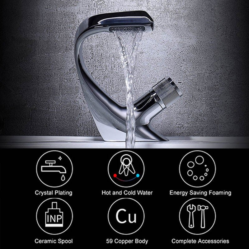 Aquacubic 304 SS Stainless Steel Bathroom Sink Tap Bathroom Waterfall Basin Faucet