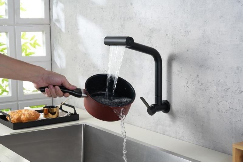 Modern Design Single Handle Kitchen Faucet Wall-mounted Cold Water Matte Black Finish Brass Material 5 Hotel Hospital Farmhouse