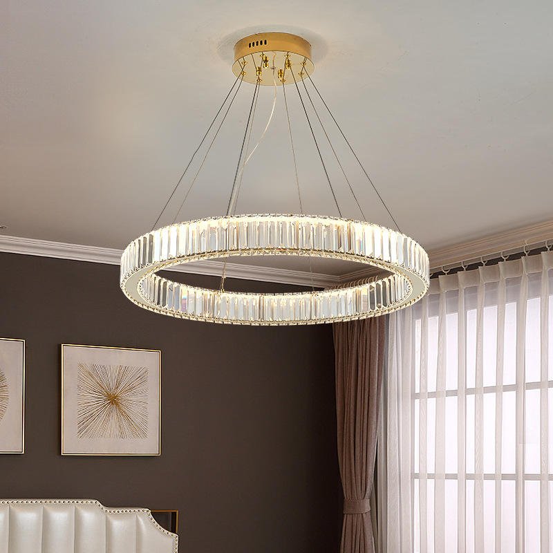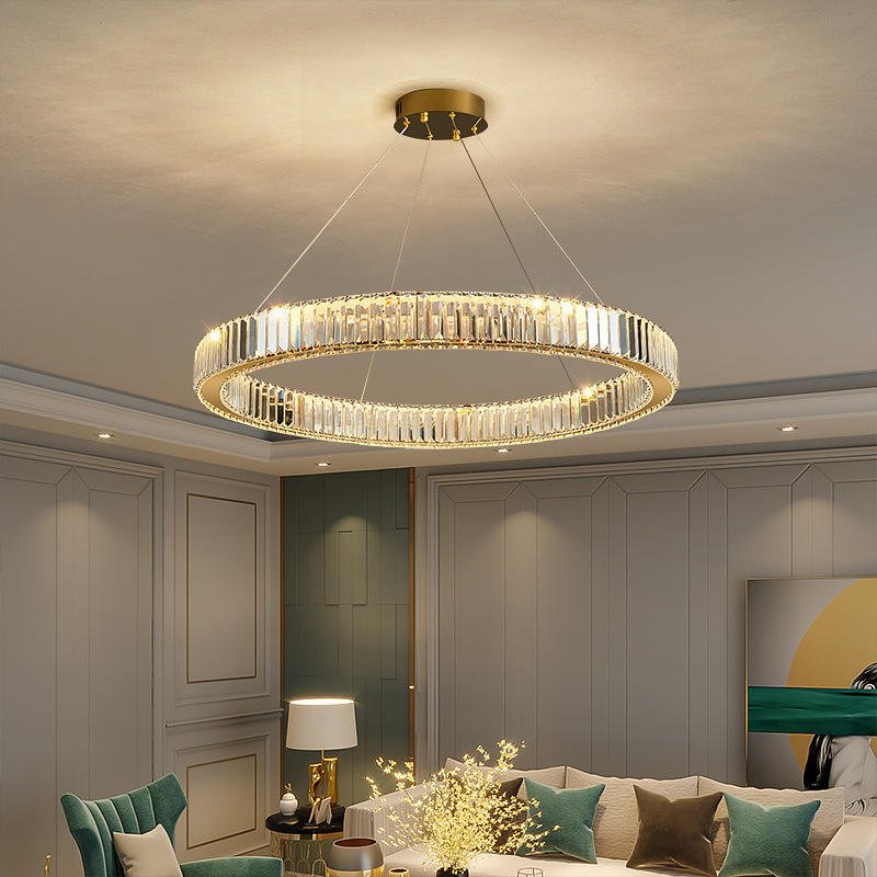 Enhance your interior with this modern crystal ring LED chandelier, designed to deliver a luxurious glow with a sleek, contemporary style. Featuring elegant circular rings and energy-efficient LED lighting, it’s perfect for villas, living rooms, staircases, and high-ceiling spaces.