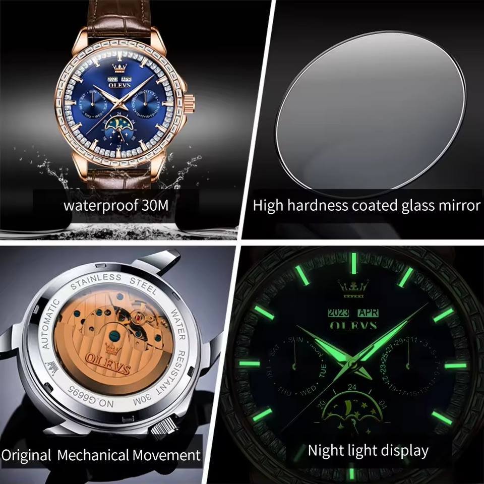 Powered by a precision quartz movement, the OLEVS 6695 ensures accurate and consistent timekeeping with minimal maintenance. Quartz watches are known for their reliability and are ideal for everyday use.