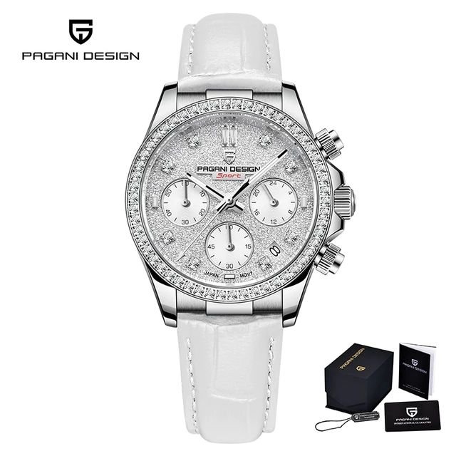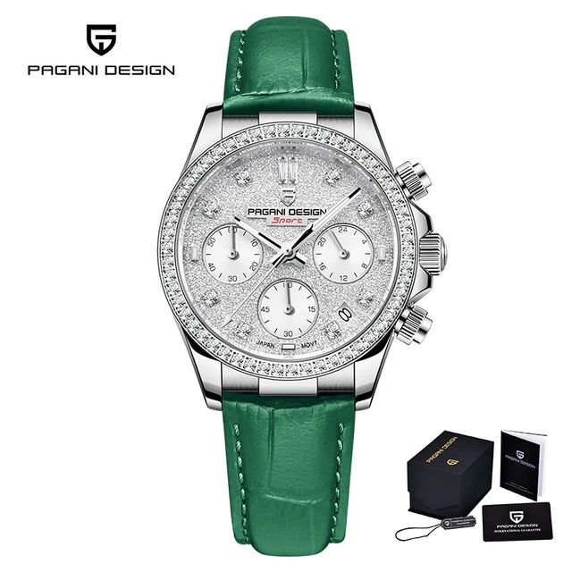 The Pagani Design PD-1730 ladies’ watch is a premium blend of elegance, durability, and advanced functionality, making it an ideal choice for women who appreciate both fashion and performance. Crafted with a high-quality 316L stainless steel case and a scratch-resistant sapphire crystal dial, this watch ensures long-lasting durability and a luxurious look. Powered by a precise Japanese quartz chronograph movement (VD55), it offers accurate timekeeping along with multiple features such as stopwatch, calendar, and luminous hands for enhanced usability. The 36mm case size provides a comfortable fit, while the genuine leather strap adds a touch of sophistication and everyday comfort. With water resistance up to 5BAR/50 meters, it is suitable for daily use and light water exposure. Whether worn for casual outings or formal occasions, the Pagani Design PD-1730 stands out as a versatile and fashionable timepiece for modern women.