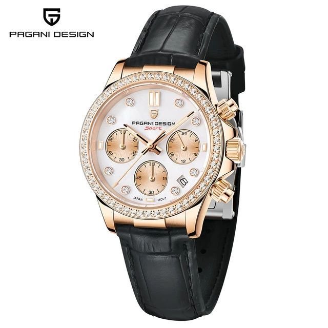 The Pagani Design PD-1730 is a stylish and multifunctional ladies’ wristwatch designed for both fashion and everyday wear. Featuring a sleek 36mm stainless steel case, sapphire crystal glass, and a reliable quartz chronograph movement, this watch combines durability with elegance. Its leather strap and water-resistant design make it a perfect accessory for modern women who value both performance and style.