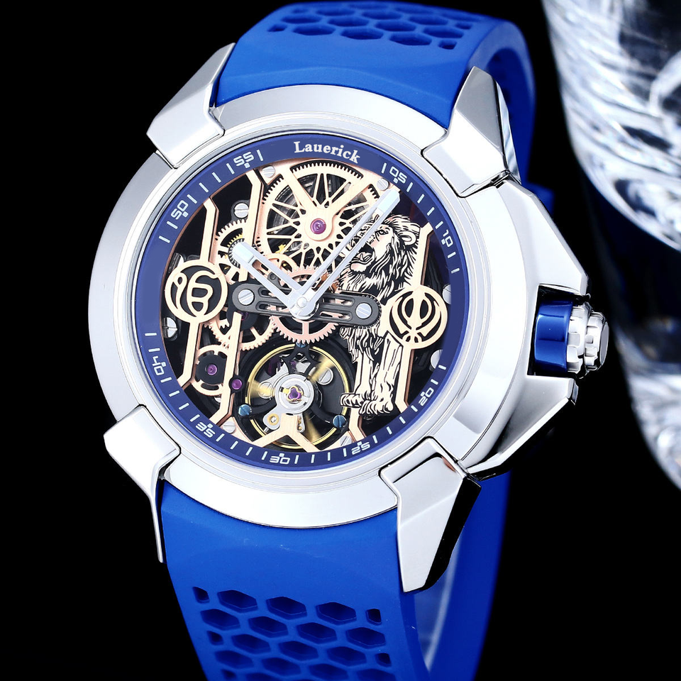 Stylish Lauerick Men’s Rubber Sports Business Wristwatches High-End Blue Mechanical Watches Pointer Sapphire Crystal Stainless