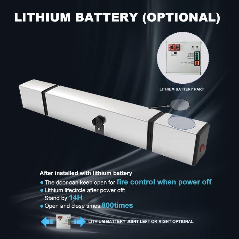 Additionally, the system may include an optional lithium battery backup, allowing continued operation or emergency opening during power failures—ideal for safety-critical environments.